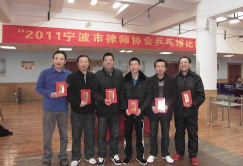 虽然天气寒冷,虽然周六律协有重要的学习活动,2011年12月17日,市律协乒乓球比赛依然吸引了30余位选手参加,宁波华茂外国学校乒乓球馆内人生鼎沸,击球声、喝彩声此起彼伏,从早上9点一直鏖战到下午3点多才决出最后名次。本次比赛来自煜华所的钱宏伟、高方军扮演了二匹最大的黑马,先后把上届亚军海泰所徐建民、冠军甬港所的郭继跃斩下马来,最后会师决赛。黑马钱宏伟的取胜秘笈是弧旋球,技术如火纯情,见球就拉,成功率在百分之八十以上,火力了得。黑马高方军的取胜秘笈则是其用的长胶球拍,一般业余选手用的都是反胶,对付长胶相当头痛,而且高方军长胶用的非常娴熟,把其他选手的凌厉攻势轻易化解掉,防守滴水不漏。一矛一盾相会在决赛,而且两人都非常熟悉,打得难解难分,精彩纷呈,把整场比赛带入了高潮。最后,还是钱宏伟技高一筹,勇夺男子单打冠军,高方军屈居亚军。波宁所的王怀伦,阳明所的孙曙光分获三,四名。甬港所的郭继跃,海泰所的徐建民分获五,六名。宁波律协男子乒乓新人辈出,技术先进,大大增强了律协乒乓球在省内的竞争力。