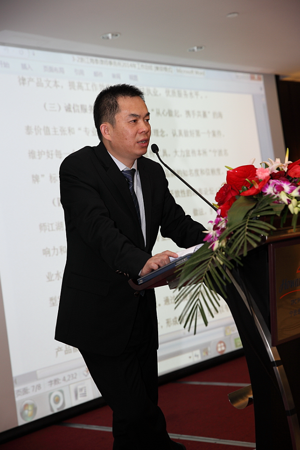 会议的第四部分是由总所陈波主任作《浙江海泰律师事务所2014年工作总结及2015年工作部署的报告》,他全面回顾了2014年海泰所取得的主要工作成绩、各项荣誉及具体做法。同时对2015年工作提出了新的目标和要求。