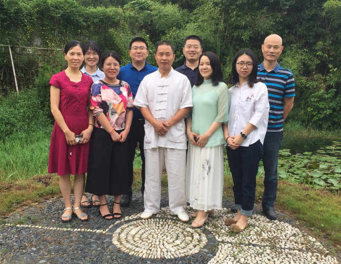 活动在东钱湖南宋石刻公园的太极道苑中伴着一缕茶香缓缓展开。太极师傅介绍道苑是绝佳的风水宝地,观之道苑所在之地三面环山,道苑似被青黛温柔环绕于怀中,苑中有池,池中有荷,清风徐来荷自开,据说池中之荷四季可开花,甚是神奇。师傅说在此练功有利于吸纳天地之精华养人之精气神,如此难得,忙站在风水宝眼处吐纳了几口真气,瞬时自我感觉自己离晋升上仙又近了一步!