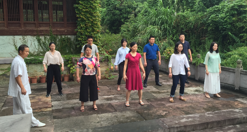 大家兴致勃勃的跟着师傅学习起无极桩来。无极桩要诀:桩者心无杂念,平心静气,且周身放松,松而不僵,又要有落地生根的稳,切不可左右晃动。看似简单动作,做好却是不易,单心无杂念一项做到就不易,耳边鸟声一起我的意识就瞬间被带走了。太极的无极桩和佛家的打坐及印度瑜伽的冥想在各自的派系中均是最基础但也都是最重要的。可见,无论哪种养生或修身养性之法,拨开烦扰回归本心都很重要。