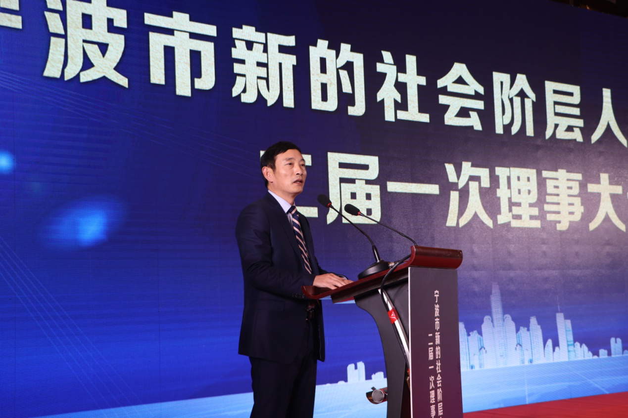 新任会长徐建民在会上做了表态发言。他表示,能当选为宁波市新联会第二届理事会会长,倍感荣幸和激动,同时也感觉压力巨大。他提出“新定位新思维”,首先要加强学习交流,提高对新阶层、新联会的认识,明白定位。在新的定位下,必须要有政治思维、政治底线和政治定力。要从个体思维跳出来,要有群体思维,是利益共同群体。还应有社会思维,心胸要更开阔,要把自己的命运与群体的命运、社会的命运紧密相连。同时他提出“新时代新作为”,作为新联会理事应在行业内有新成就,建功立业;在社会上有新服务,既要为广大群众排忧解难,又要为党委政府中心工作建言献策;社会新阶层被誉为“意见领袖”,不为噪音所惑、不为困难所惧,我们要利用新媒体传递正能量,做好引导者。并“加强联谊会自身建设,展现新联会新形象”,不断探索新模式、搭建新平台、打造新品牌,大力开展各种丰富多彩的活动,努力把联谊会建设成为团结之家、温暖之家。通过我们立言、立行,唱响“六争攻坚”“三年攀高”最强音,推动宁波走在高质量发展前列做出应有贡献,提升社会新阶层人士的地位和影响力。