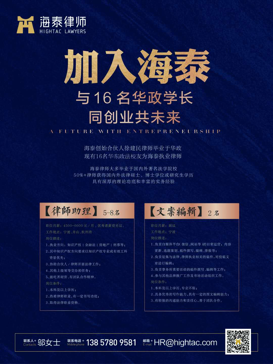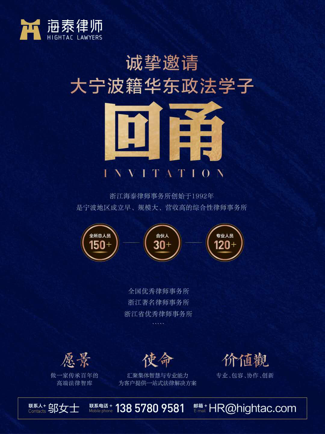 念念不忘,必有回响。面对这么多上海知名律所,海泰所扬长避短,直亮家乡牌,非常务实的实施精准引才。几位宁波籍的华政学子听师兄或同学推荐来到海泰所展位前,有位慈溪籍的华政学子说“从同学处听说海泰来招聘会,下午特意从实习的法院请假过来,家乡很好……”
