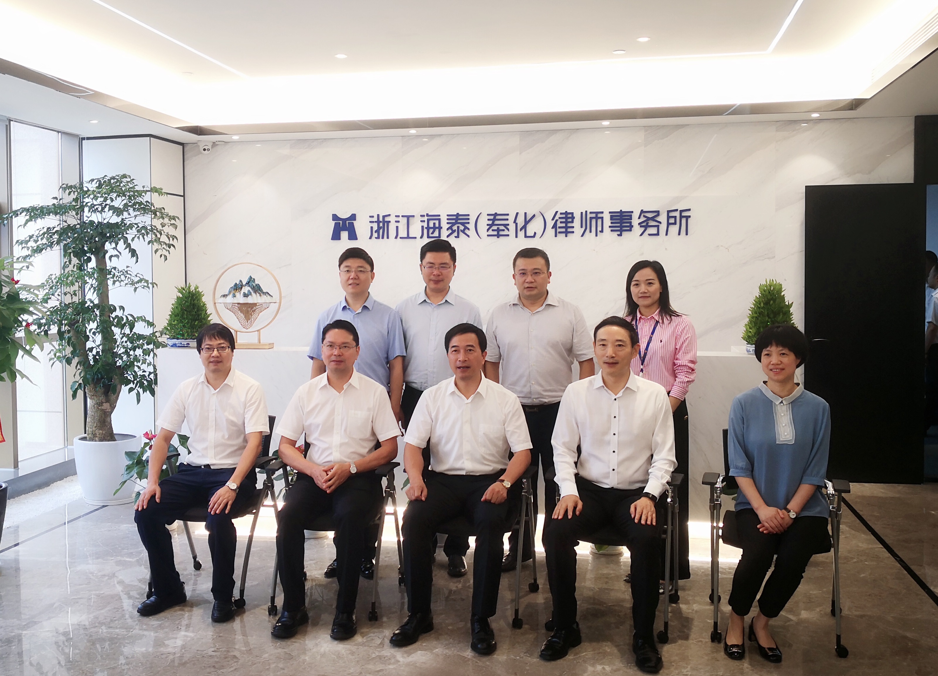 7月16日上午,奉化区区长张文斌、常务副区长魏建根、区府办主任卓奇荣、区司法局局长袁义琛、岳林街道主任范申松等一行莅临浙江海泰(奉化)律师事务所调研。浙江海泰律师事务所主任邬辉林、高级合伙人徐建民,浙江海泰(奉化)律师事务所主任邵建波、副主任吴宜红陪同张区长一行参观律所。张文斌区长表示区里对海泰来奉化设分所十分关心并抱以期许,希望海泰奉化分所能为奉化法治生态环境做出积极贡献,助力奉化社会经济发展。
