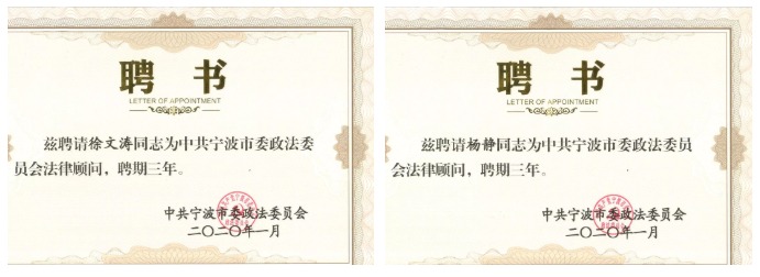 交流结束后,罗副书记聘请海泰所权益合伙人徐文涛、杨静二位律师为市委政法委员会