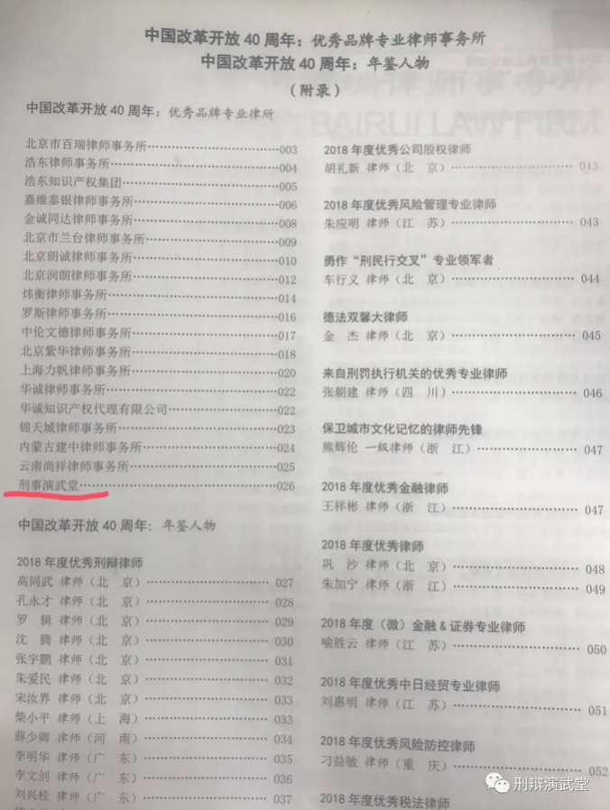 近日,海泰刑事演武堂获得中国法学会主办的《中国法律年鉴》中国改革开放40周年:优秀品牌专业律所(机构类)荣誉称号。该荣誉称号在全国范围内仅有19家律所(团队)获得,宁波地区仅有海泰刑事演武堂入选。