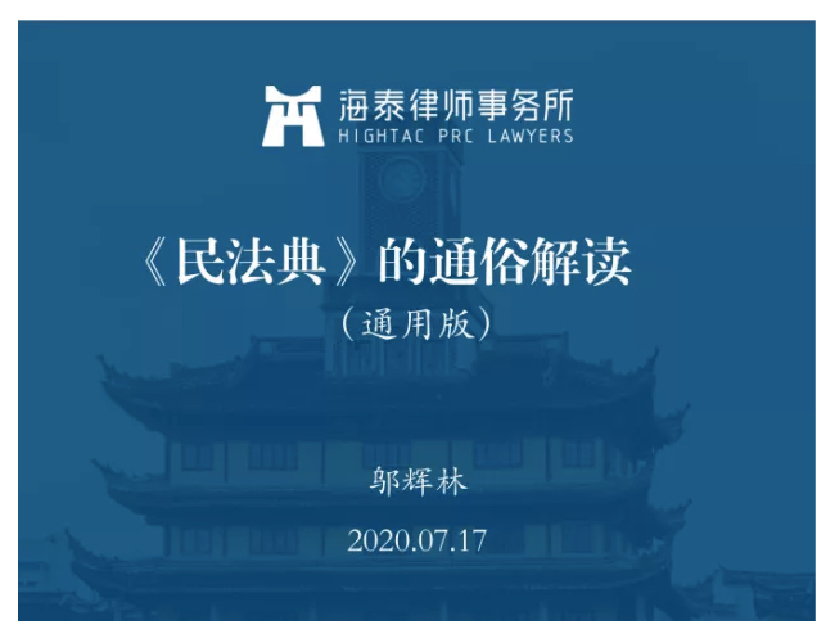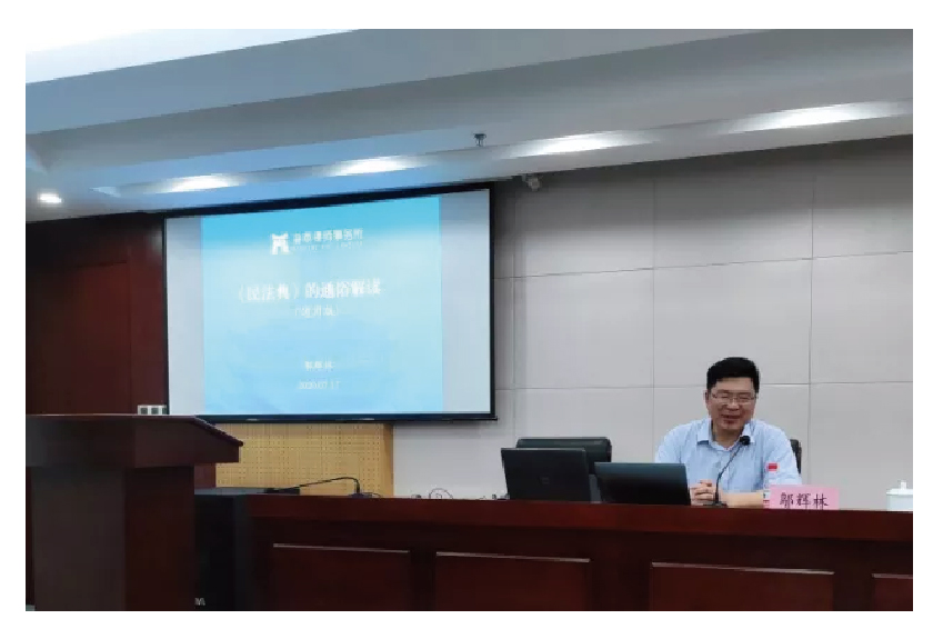 民法典将于2021年1月1日起施行,习总书记在中央政治局第二十次集体学习时的重要讲话,深刻阐明了颁布实施民法典的重大意义,全面部署了实施民法典的重点工作。2020年7月17日,海泰律师事务所主任邬辉林律师应宁波市贸促会的邀请,为宁波市贸促会工作人员作“《民法典》的通俗解读”专题讲座。