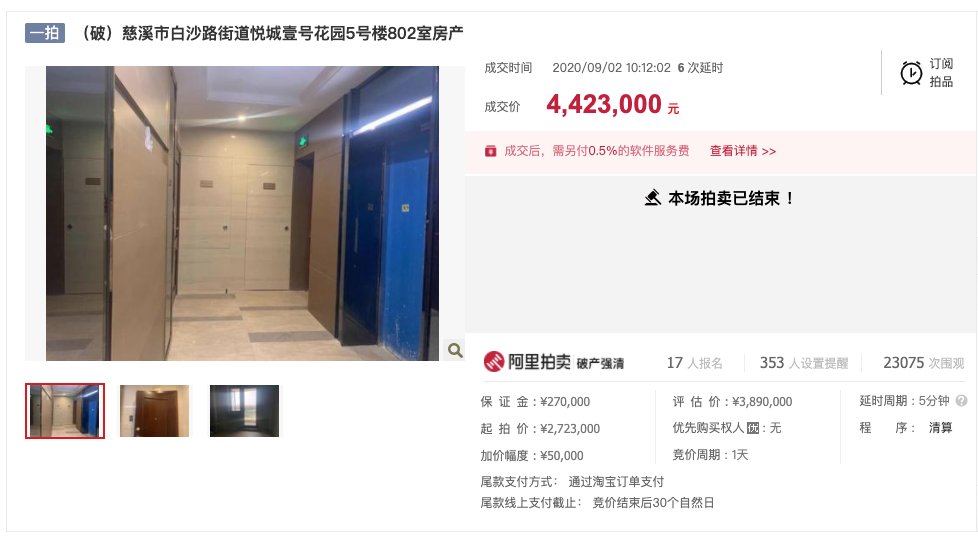 2020年9月2日上午10时,恒元置业(慈溪)有限公司开发的“悦城壹号花园”项目5套存量房及1个地下车位在淘宝网司法拍卖平台拍卖成交,合计成交金额达40302800元。浙江海泰律师事务所作为恒元置业(慈溪)有限公司的破产管理人,本着勤勉尽责,忠实执行职务的原则,依法对债务人财产进行审核并经第三方评估机构进行评估后进行网上挂拍。
