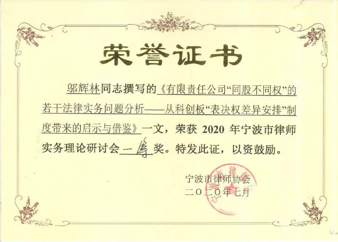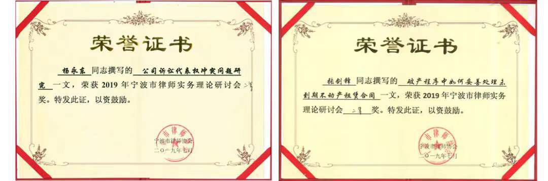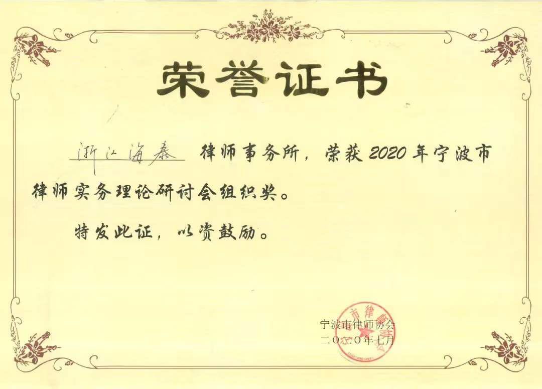 海泰秉承“专业成就价值”的理念,务实笃行,精研法理,始终坚持理论与实务并重,注重理论学习与研究,多年来撰写的论文在华东律师论坛、浙江律师论坛及长三角洲法学论坛上均取得了良好的成绩,尤其是宁波市律师实务理论研讨论坛所提交论文的数量、入围量、获奖量均位列前茅,连续四年蝉联宁波市律师实务理论研讨一等奖,彰显海泰律师理论实务实力。