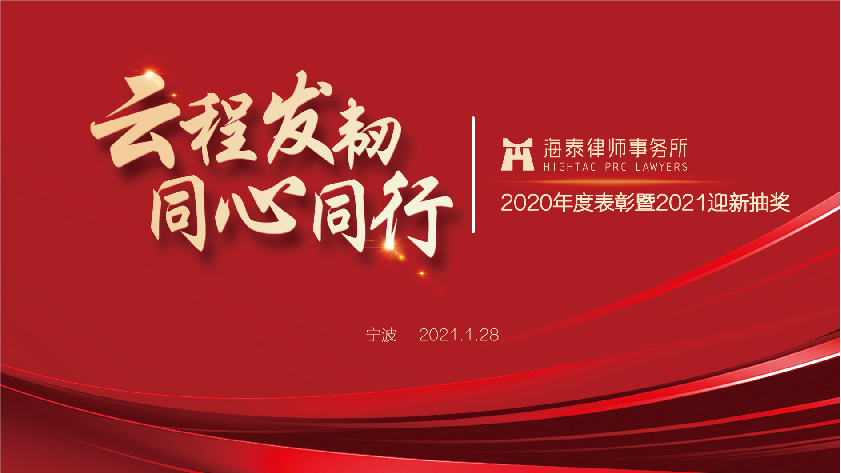 岁序常易,华章日新。2021年1月28日下午,浙江海泰律师事务所2020年度表彰暨2021迎新抽奖庆典于总所大会议室圆满举办。为配合做好防疫工作,本次大会以线上线下同步直播的形式举行,全所人员线上参观看直播,线上线下共聚一堂,欢庆盛典。