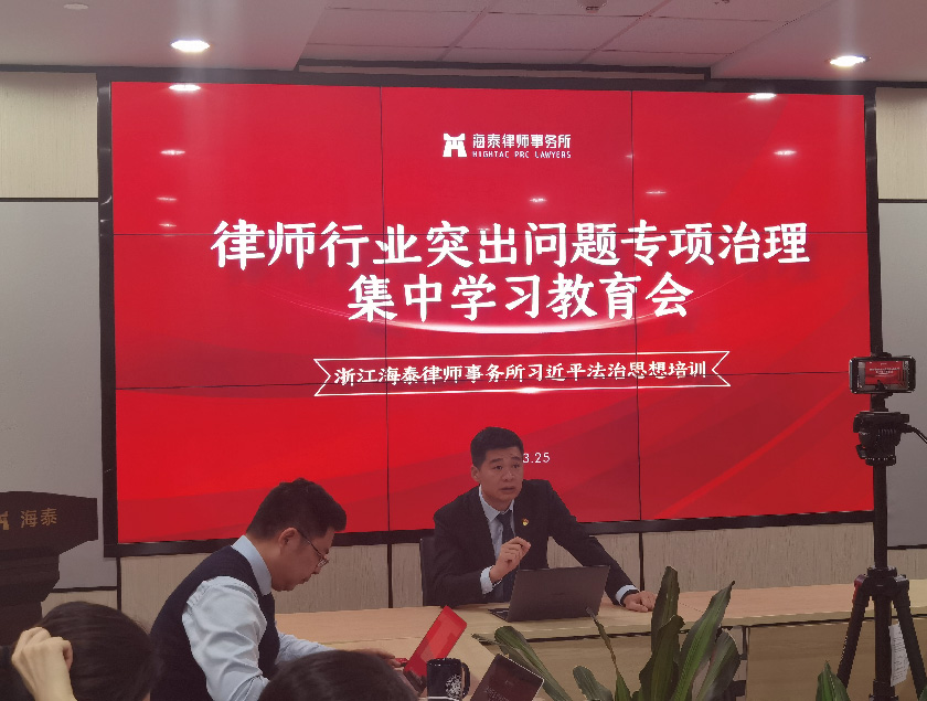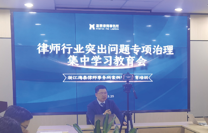 为贯彻落实中央和省委、市委关于政法队伍教育整顿工作和党史学习教育的部署要求,响应市司法局律师行业突出问题专项治理活动的号召,3月25日晚,海泰律师事务所召开律师行业突出问题专项治理集中学习教育会,我所主任邬辉林和党总支书记徐文涛主持会议,会议采取线上线下同步直播的形式开展,全所律师参与学习。