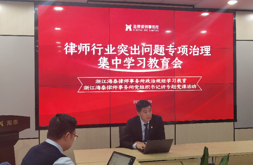 为了解党的光辉历史、感悟党的初心使命、领会党的创新理论、传承党的红色基因,进一步增强“四个意识”、坚定“四个自信”、做到“两个维护”。3月25日晚,海泰所党总支书记、高级合伙人徐文涛律师围绕党史学习教育、政治规矩学习教育、党组织书记讲专题党课以及先进典型教育活动作主题宣讲,引导全所律师学党史、强信念、跟党走。