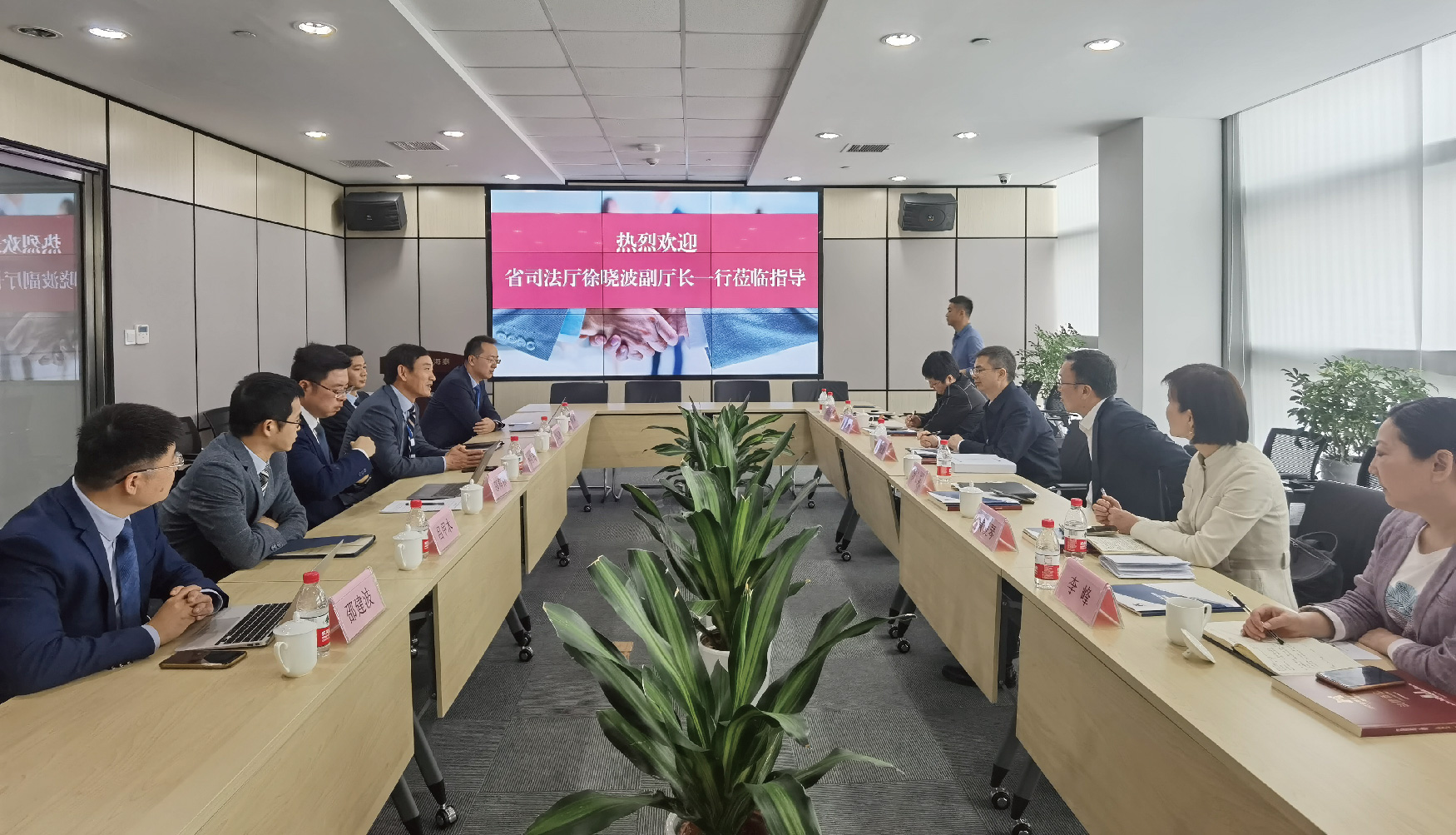 2021年4月28日上午,浙江省司法厅党委委员、副厅长、省律师行业党委书记徐晓波一行莅临我所督导律师行业突出问题专项治理工作,宁波市司法局副局长、市律师行业党委书记罗仙兵,市律工处处长黄爱琴,鄞州区司法局局长夏国芬,区律工科科长李峰陪同调研。海泰所主任邬辉林,党总支书记徐文涛,高级合伙人徐建民、吕甲木、邵建波、傅丹辉陪同徐晓波副厅长一行参观律所后进行座谈交流。