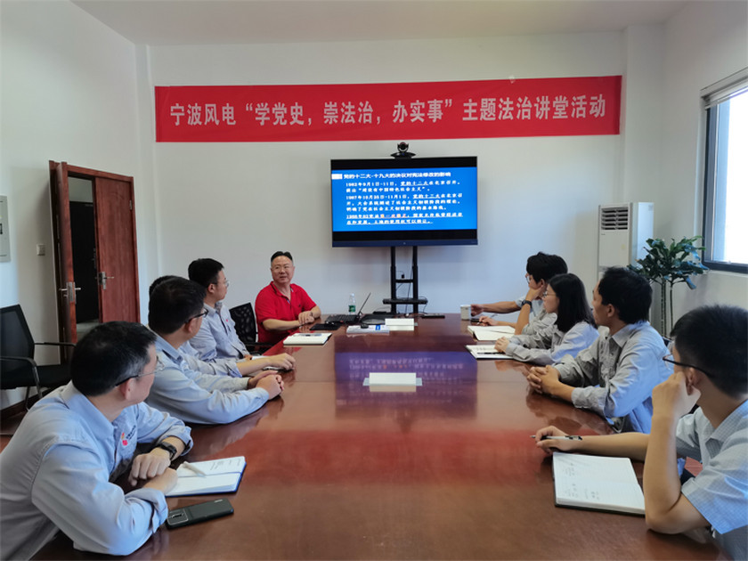 2021年9月23日下午,海泰开发区分所主任石剑平律师受邀来到海拔700多米的国电电力宁海茶山风电场,为风电场的工作人员开展了一堂名为“学党史,崇法治,办实事”的宪法与党史专题讲座。
