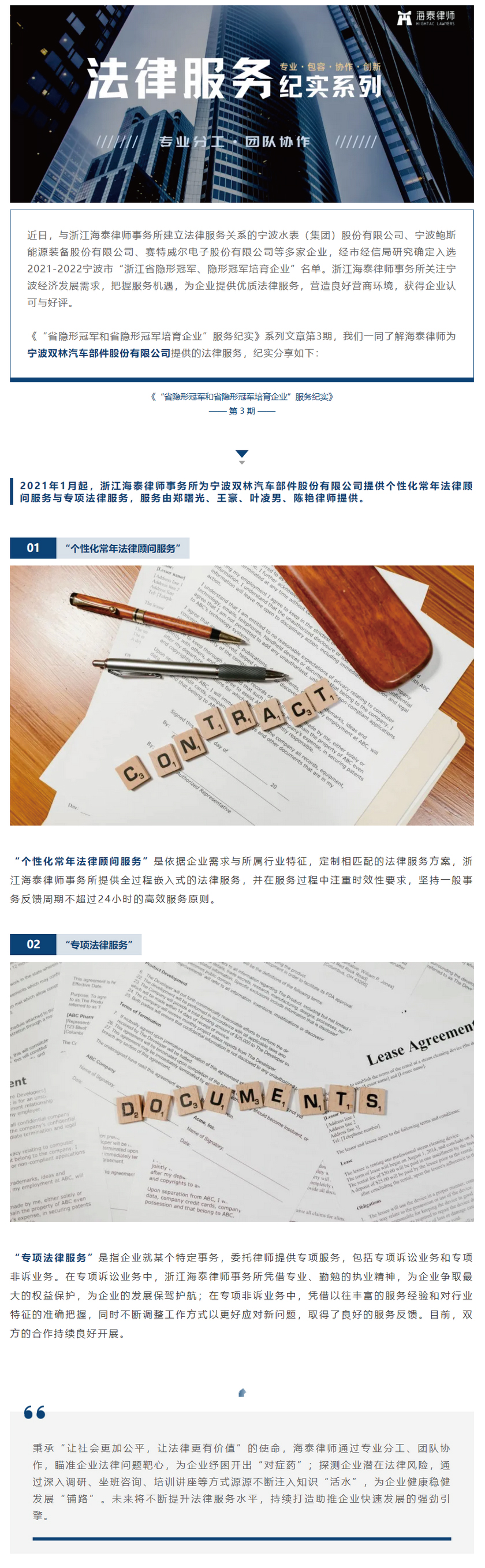 海泰律师服务宁波双林汽车部件股份有限公司 | “省隐形冠军和省隐形冠军培育企业”服务纪实