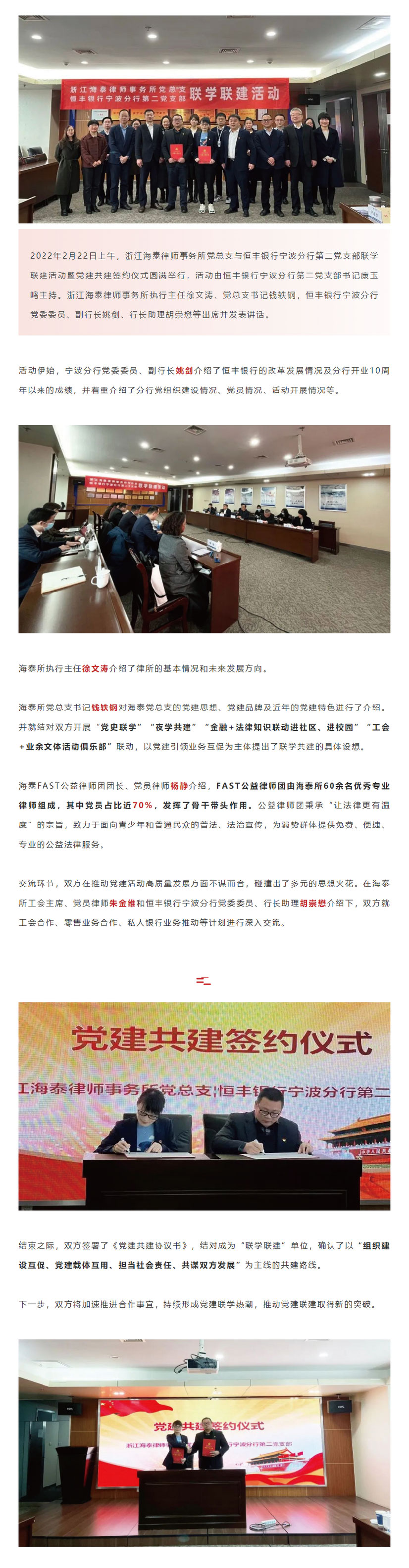 凝共识 促发展 | 海泰所党总支与恒丰银行宁波分行第二党支部联学联建活动暨党建共建签约仪式圆满举行