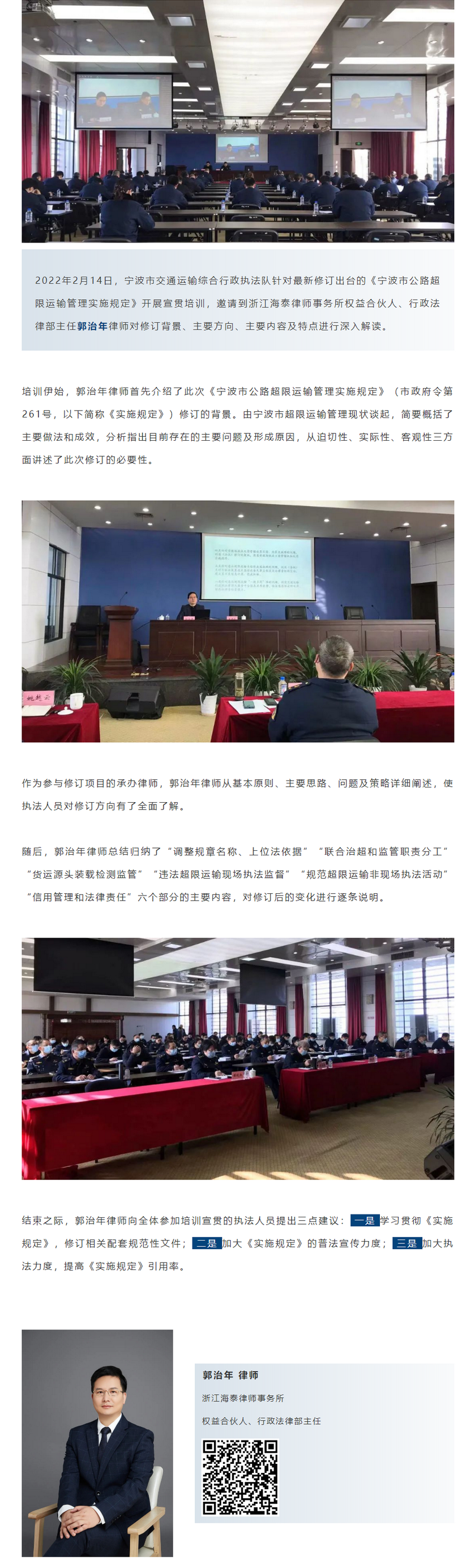 郭治年律师受邀为宁波市交通运输综合行政执法队执法人员培训 | 海泰简讯
