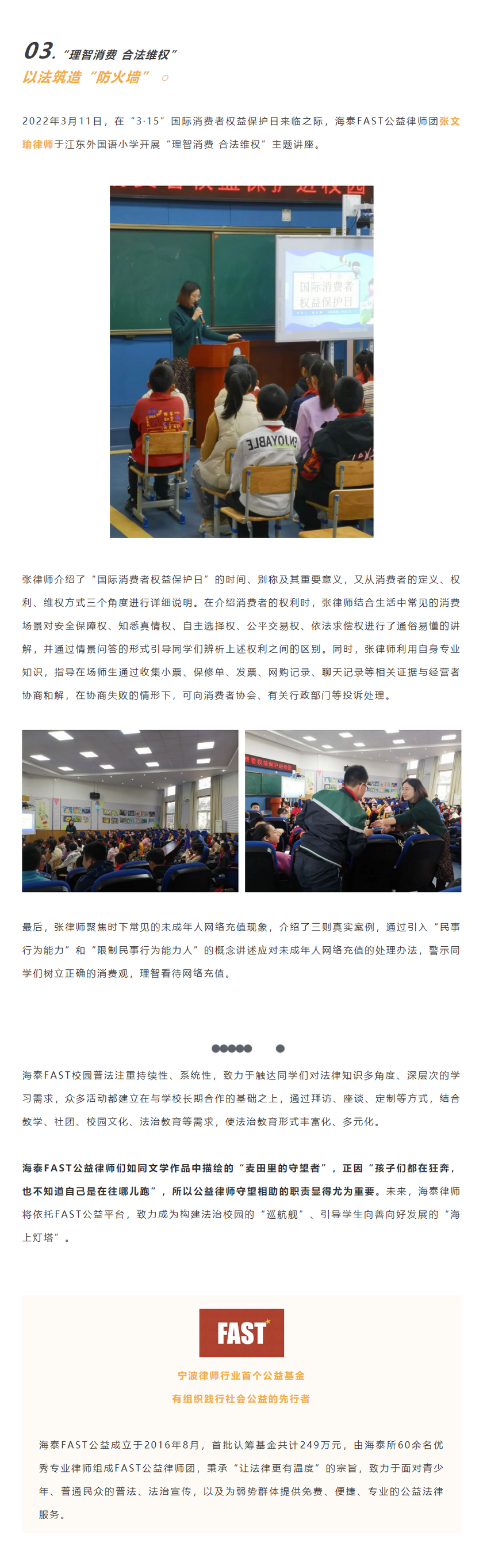 青春有你 与法同行 | 海泰FAST公益律师团送法进校园,争做“麦田里的守望者”