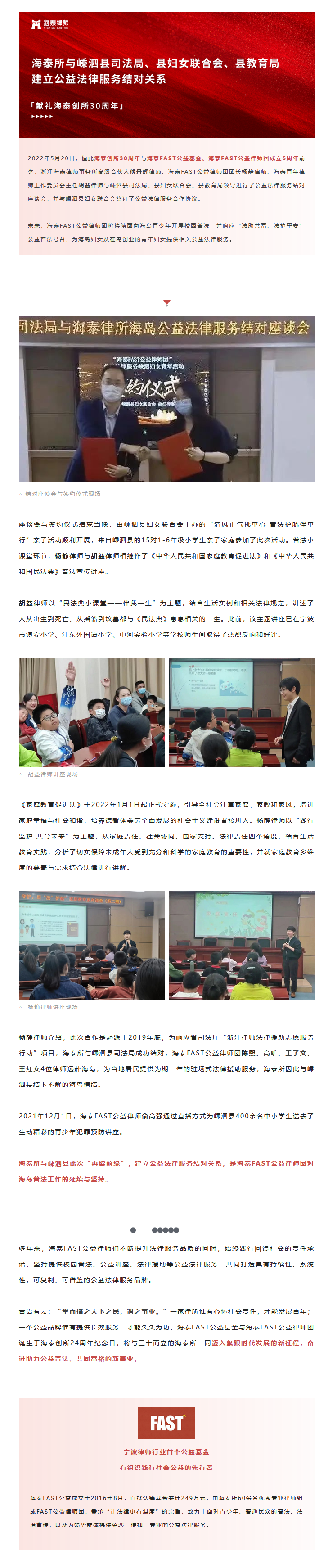 海泰所与嵊泗县司法局、县妇女联合会、县教育局建立公益法律服务结对关系