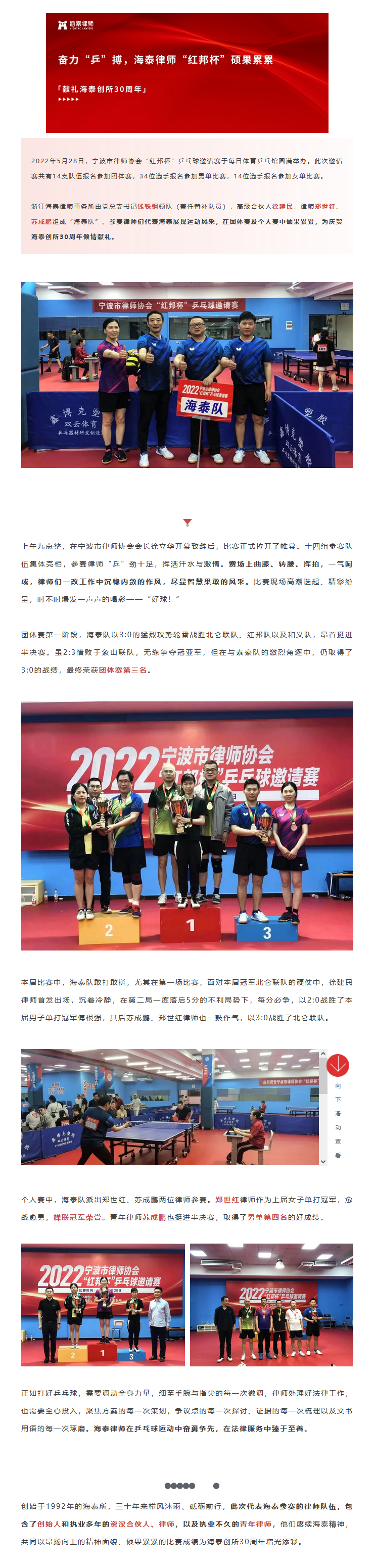 奋力“乒”搏,海泰律师“红邦杯”硕果累累 | 献礼海泰创所30周年