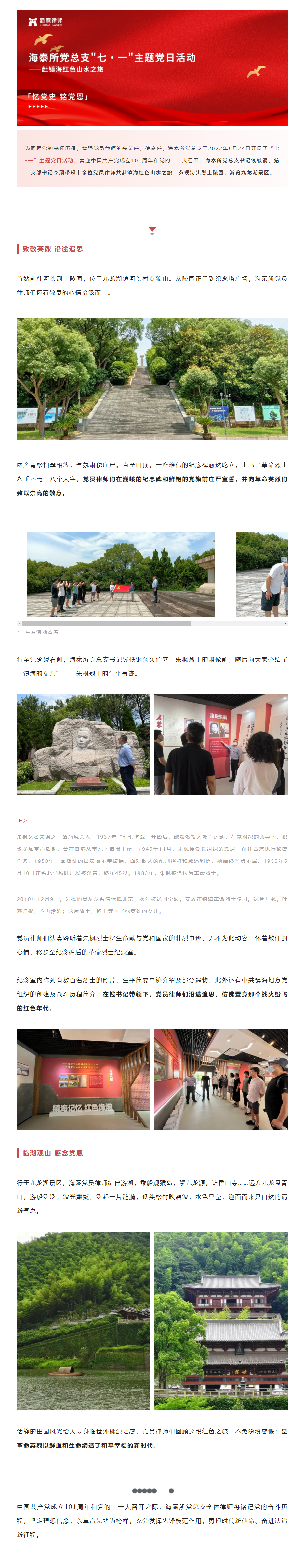忆党史 铭党恩 | 海泰所党总支“七·一”主题党日活动赴镇海红色山水之旅