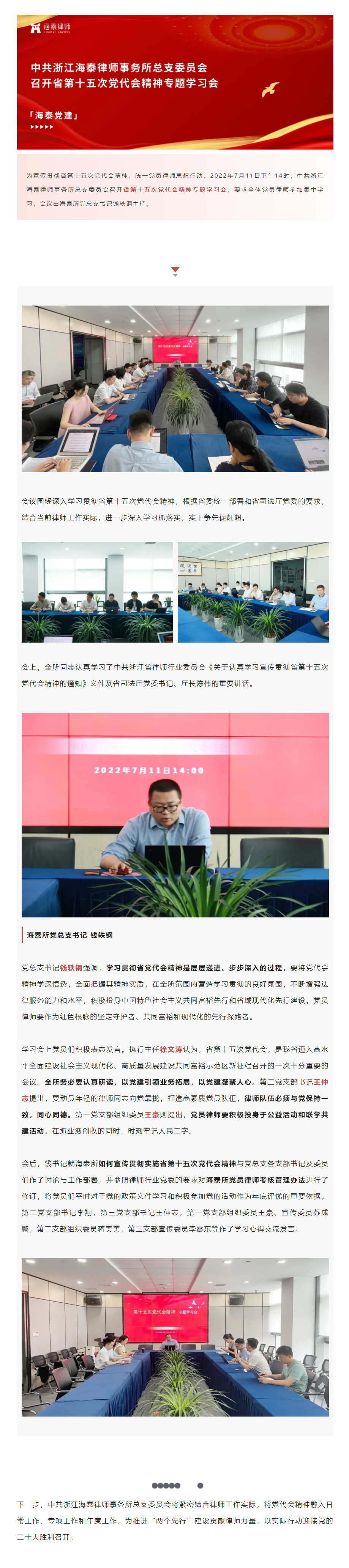 中共浙江海泰律师事务所总支委员会召开省第十五次党代会精神专题学习会 | 海泰党建