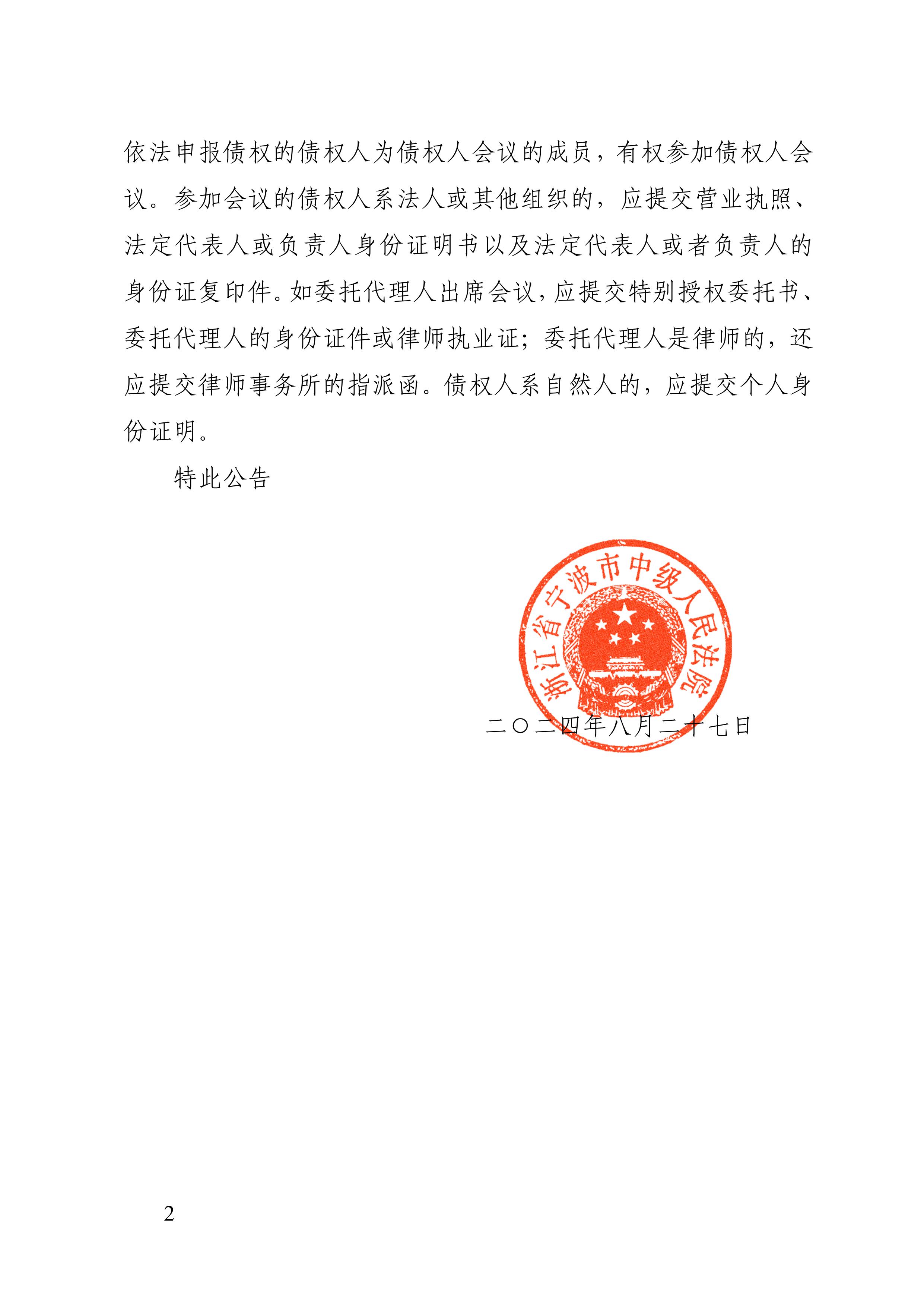 宁波高新区华博自动化设备科技有限公司破产公告