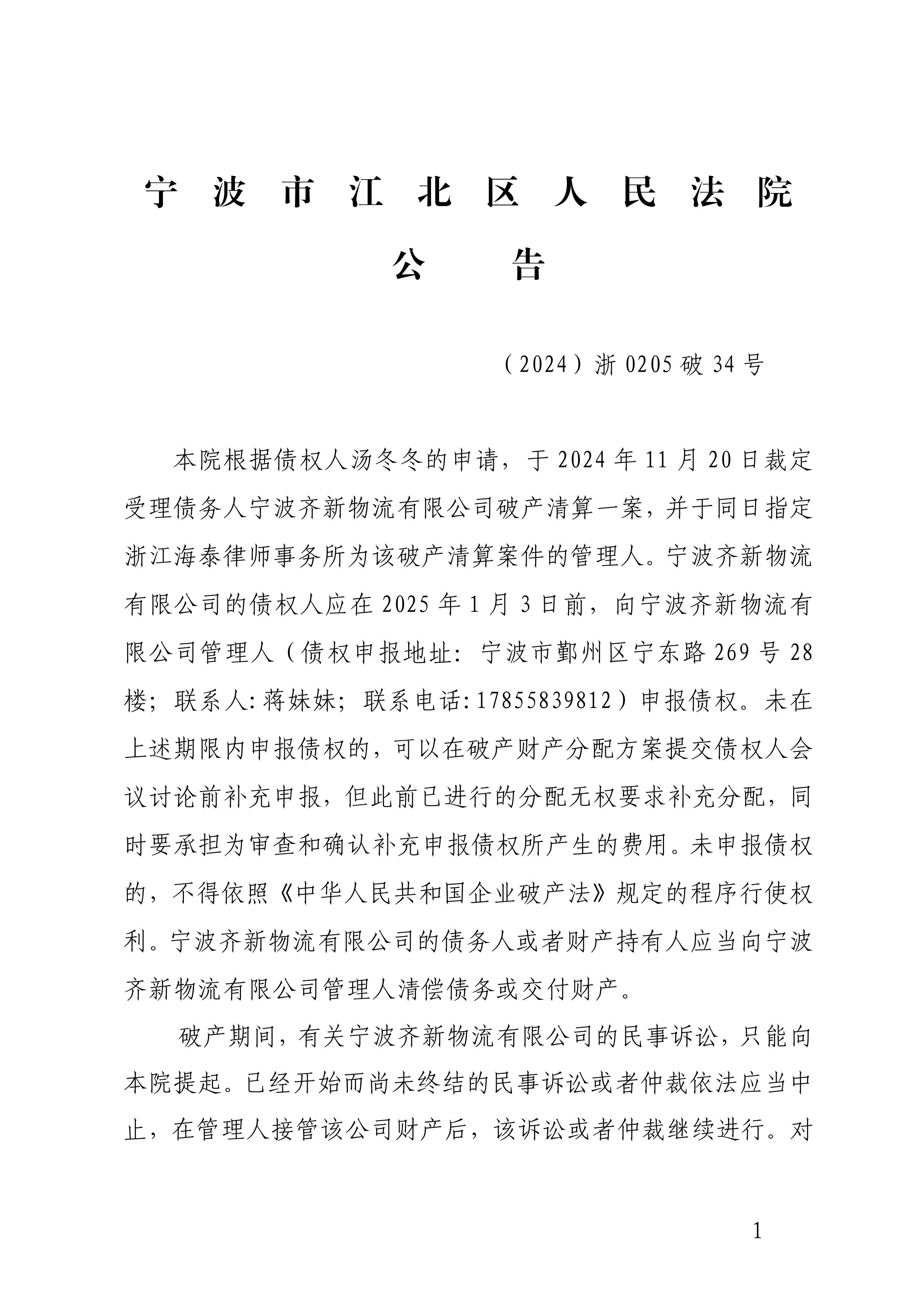 慈溪市工业品批发市场经营服务有限公司破产财产分配公告