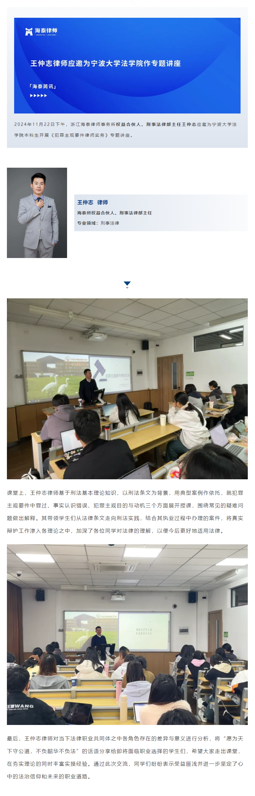 王仲志律师应邀为宁波大学法学院作专题讲座
