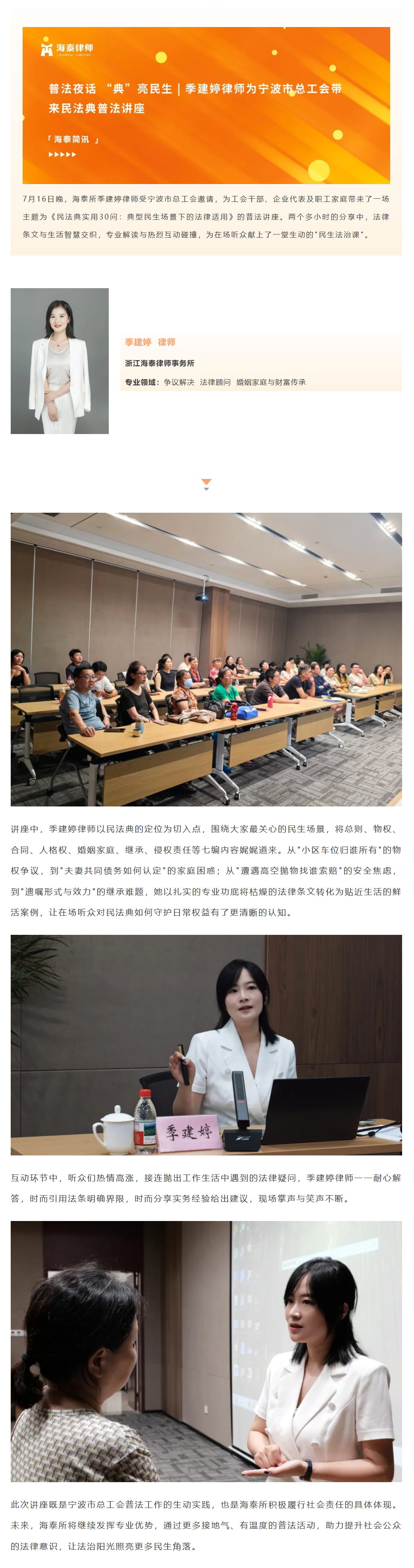 普法夜话 “典”亮民生 | 季建婷律师为宁波市总工会带来民法典普法讲座