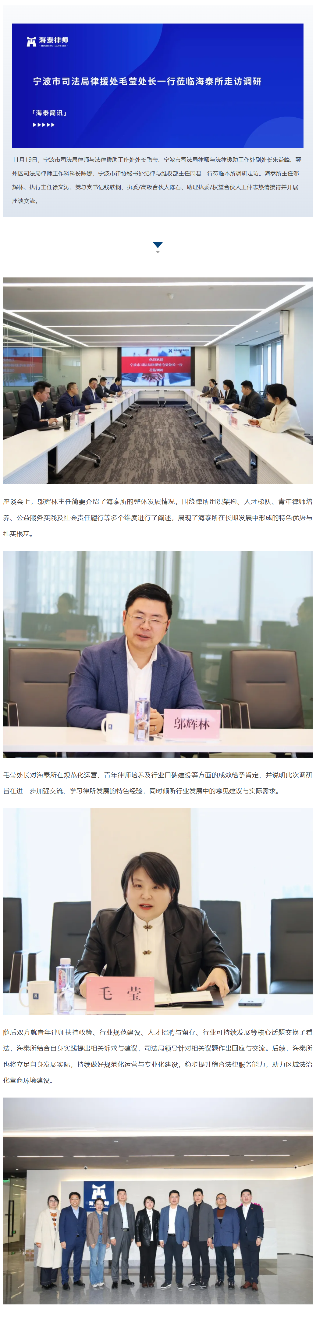 宁波市司法局律援处毛莹处长一行莅临海泰所走访调研 | 海泰简讯