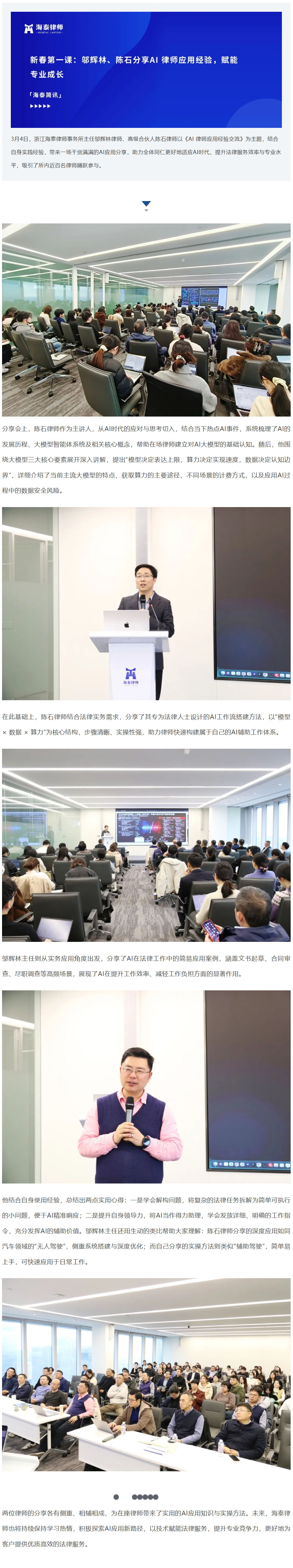 新春第一课:邬辉林、陈石分享AI 律师应用经验,赋能专业成长 | 海泰简讯